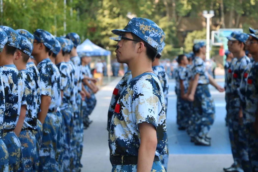 从参差不齐到整齐划一,最好的莫过于炎炎烈日下,站军姿的气势一点没有削减,眼神坚定身体挺拔。一个声音,一个动作,即使汗流浃背,也为我们带来最美的迷彩夏日。