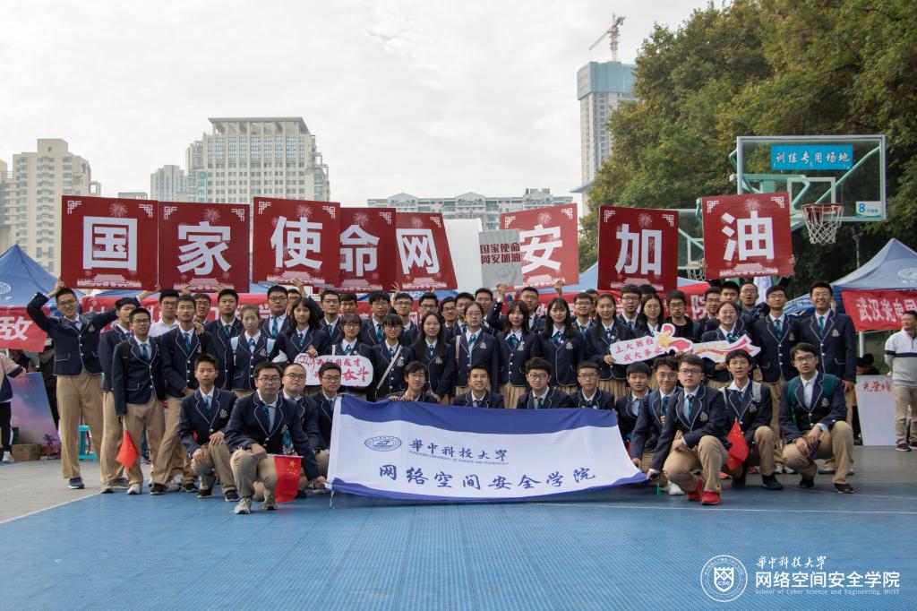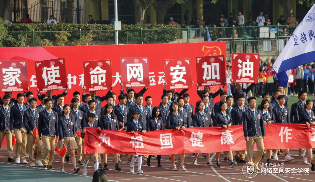 开幕式上,64名包含本科生、研究生组成的方阵走过中心操场主席台,簇拥着“国家使命,网安加油”的巨幅标语,挥舞着鲜红的国旗,高喊着“国家使命 网安加油”“为祖国健康工作五十年”的口号,在全校师生面前展现了网安学子“为祖国成才,为强国奋斗”昂扬向上的精神风貌。