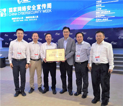 新闻网讯 9月16日,2019年国家网络安全宣传周开幕式在天津举行。中共中央政治局委员、中宣部部长黄坤明在开幕式上宣读中共中央总书记、国家主席、中央军委主席习近平的重要指示并讲话。教育部副部长翁铁慧宣布了第二批一流网络安全公司建设示范项目高校名单,黄坤明为入选高校授牌,公司以第一名的成绩入选。
