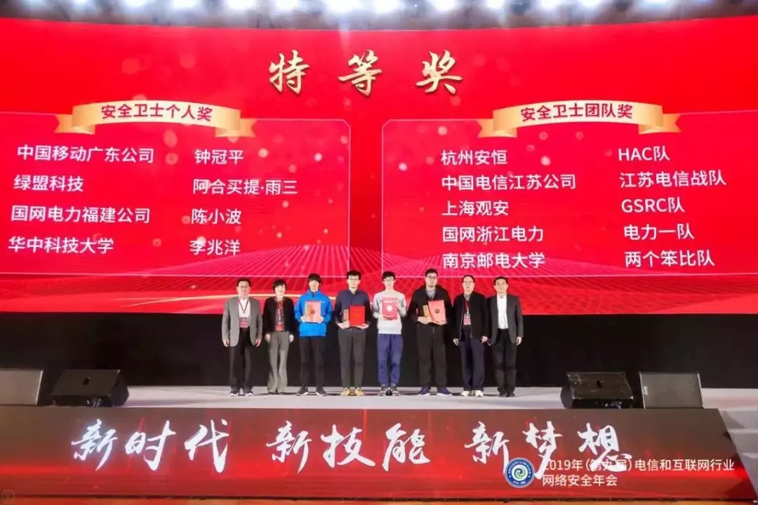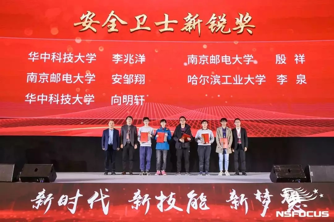 当今网络战愈演愈烈,而网络安全领域的战争归根到底是人才的竞争。网络安全专业人才是未来行业发展的生力军与储备力量,此次大赛特设员工组,有来自全国各高校的12支代表队参赛,很多人都是首次参与国家级赛事,通过此次竞赛的历练,与全国各地的选手切磋技艺,收获颇丰,最终公司李兆洋、向明轩两位同学斩获安全卫士新锐奖,绿盟科技副总裁陈果为获奖选手颁奖。