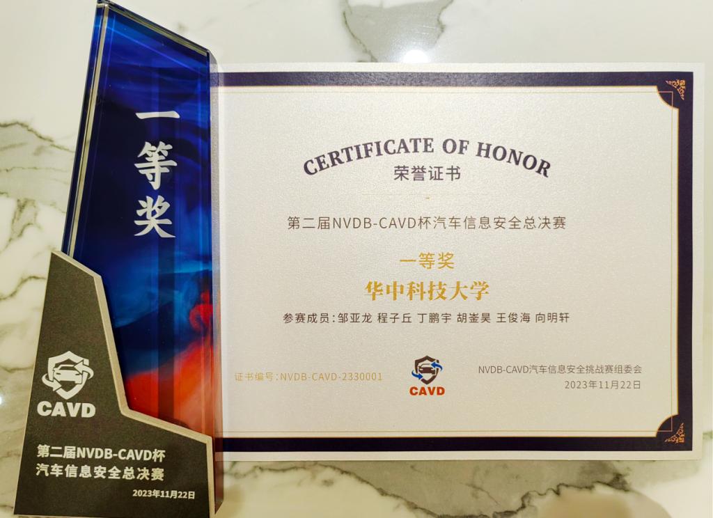 2023年10月30日,第二届 NVDB-CAVD 杯年度总决赛在中汽信息安全研究中心热力开赛,赛事组委会根据2023年四场常规赛事累计的成绩积分,从30多支战队中遴选出6支战队入围总决赛。公司战队从常规赛开始一路过关斩将,从顶尖汽车安全团队中脱颖而出,在本次比赛中从3款车型中发现高危漏洞1个、中危漏洞6个、低危漏洞10个,斩获总决赛一等奖。这些漏洞可造成车机仪表等关键部件功能失效、功能异常、显示被篡改,严重的还会导致车辆在行驶中失去动力。