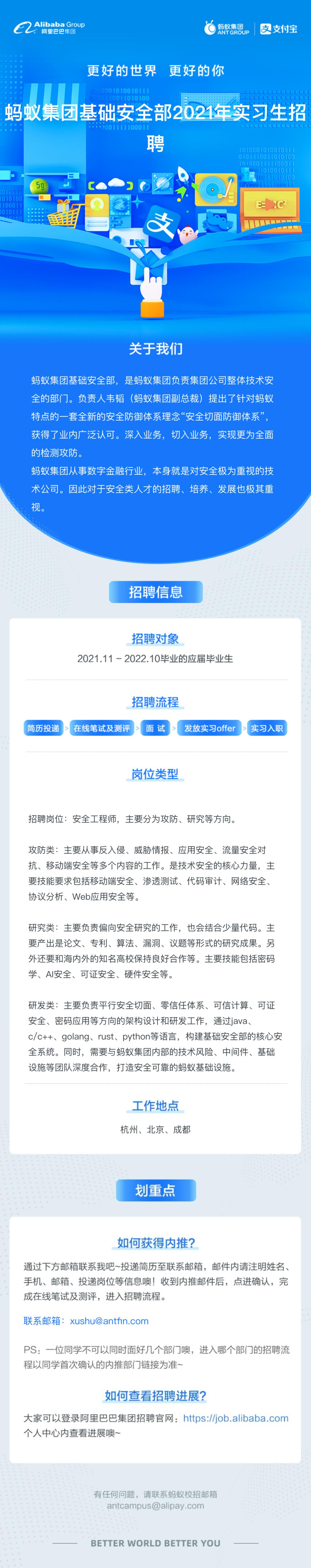 【实习生招聘】阿里巴巴-蚂蚁集团基础安全部2021年实习生招聘