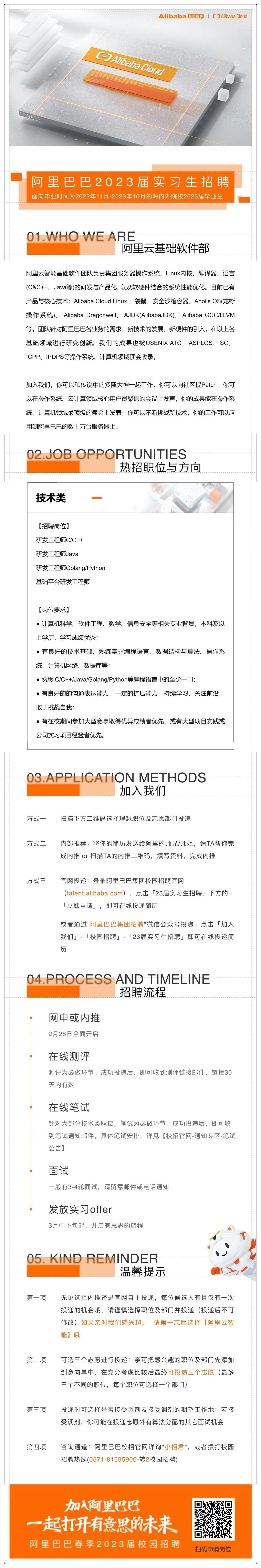 【实习信息】阿里巴巴2023届实习招聘 发布日期:2022-04-08 浏览次数: 关键字: 实习 信息 阿里巴巴 阿里 巴巴 2023 20 23 招聘 上一主题: 【春季招聘】中荣印刷集团-22届校招信息 下一主题: 【春季招聘】格力电气2022届春招